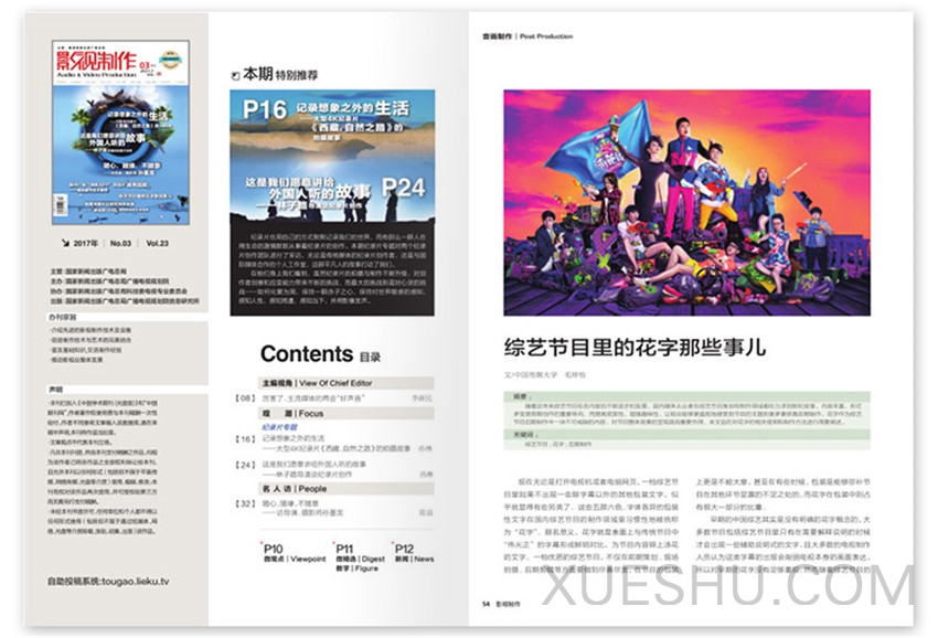 《影视制作》(月刊)经过多年的不懈努力,流行度高,大众辨识度广,创刊于1994年,开拓了视野,带给读者富有生活特色的内容。专注于影视节目摄制、编辑、后期制作技艺的推广,及相关设备和系统的选型、构建等,致力推动我国影视制作业整体水平的提高。多年来,《影视制作》贴近读者、贴近行业、贴近市场,针对性、实用性强,为业界人士所喜闻乐见。